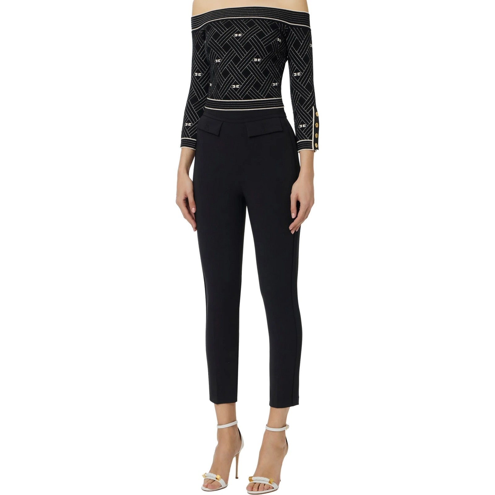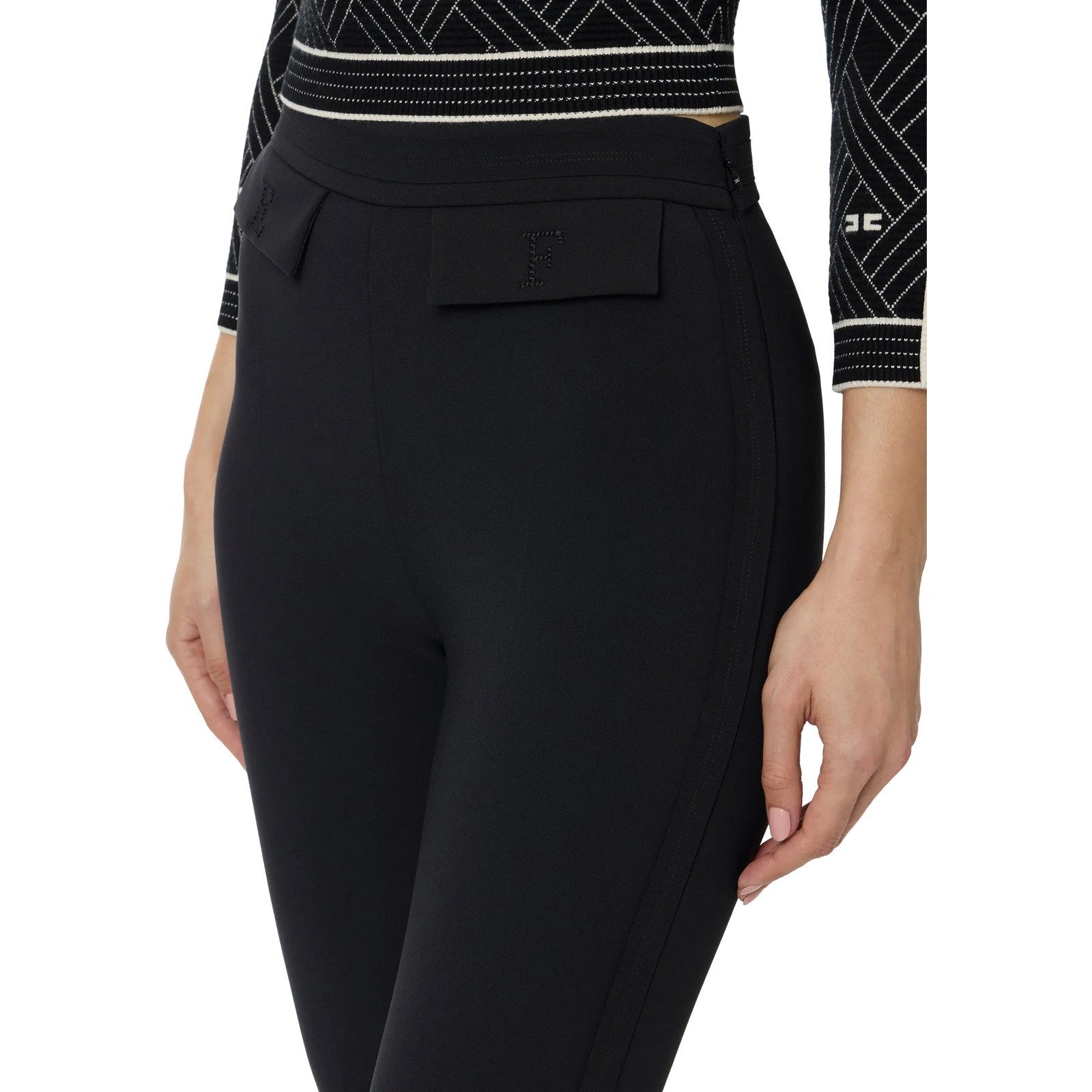La scelta di materiali sostenibili riflette l'impegno di Elisabetta Franchi verso una moda responsabile, permettendoti di indossare un prodotto che non solo esalta la tua bellezza, ma rispetta anche il nostro pianeta. Ogni dettaglio è pensato per offrire un'ottima vestibilità, mentre la qualità dei tessuti garantisce una durata nel tempo, rendendo questi pantaloni un investimento nella tua eleganza quotidiana.