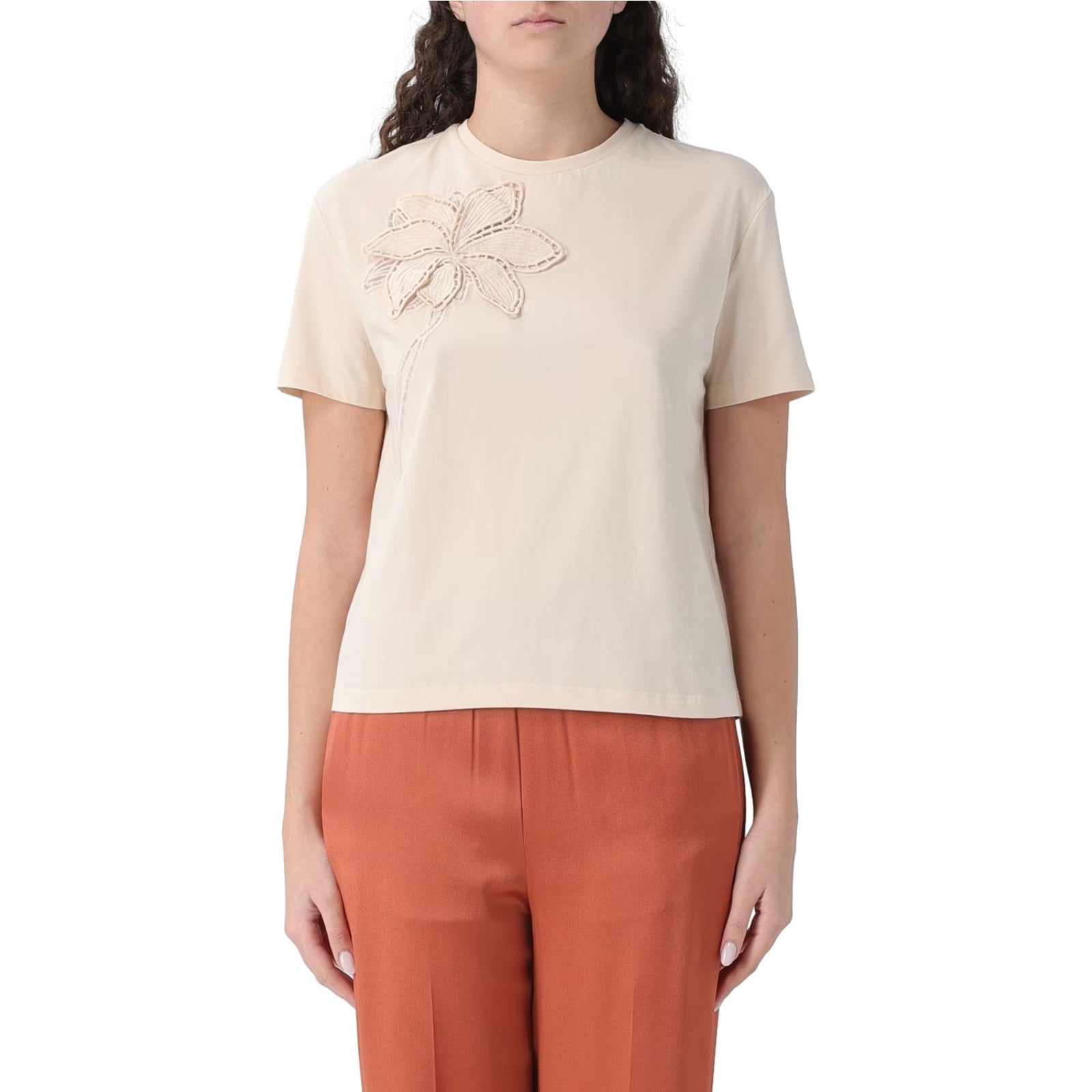 T-shirt Donna Twinset - T-Shirt In Jersey Con Ricamo - Beige