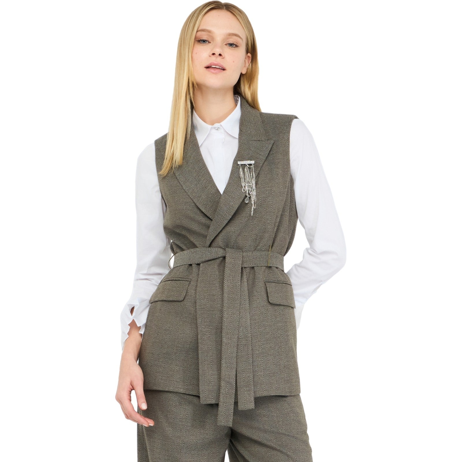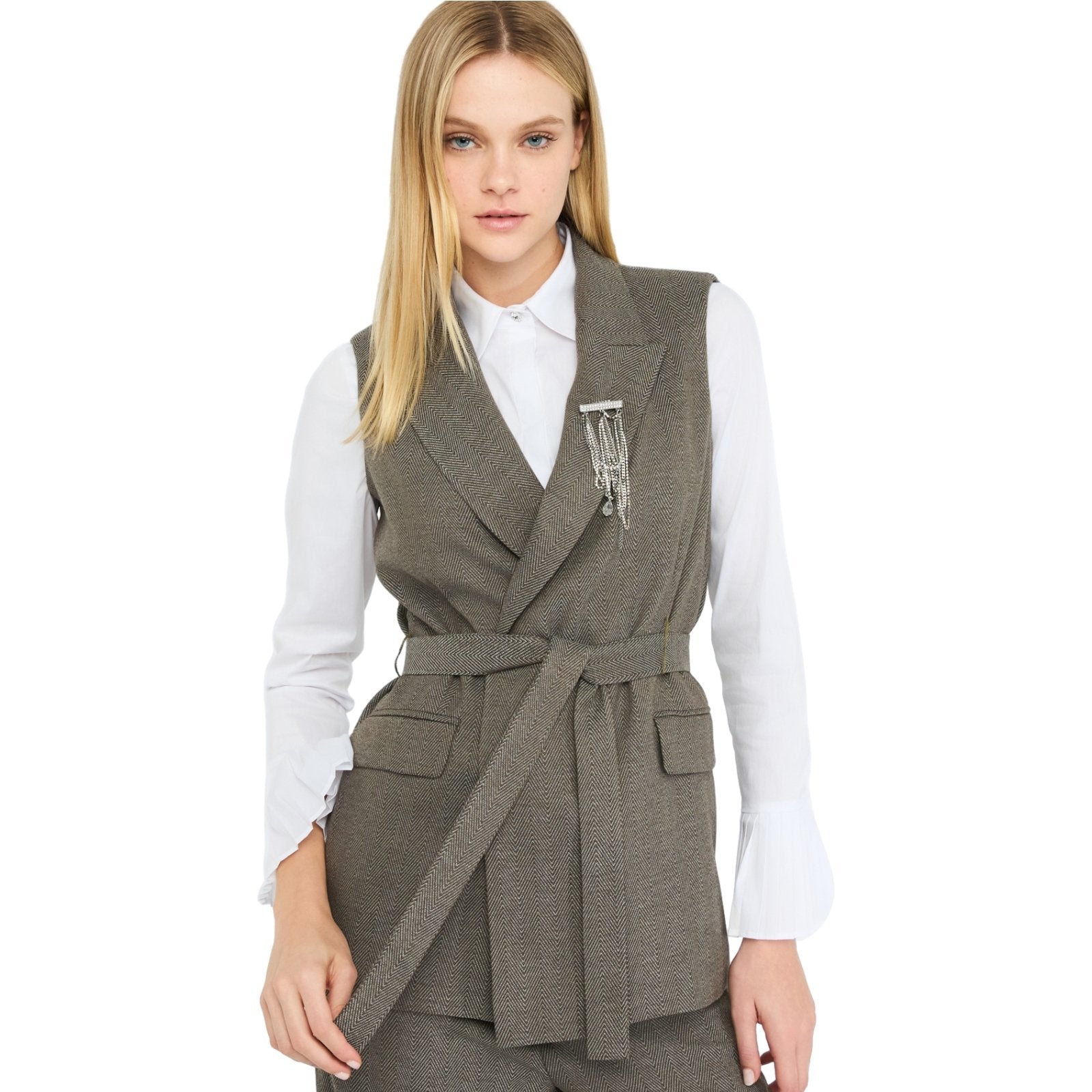 Gilet Donna Liu Jo - Gilet Cinturato C/ Accessorio - Grigio