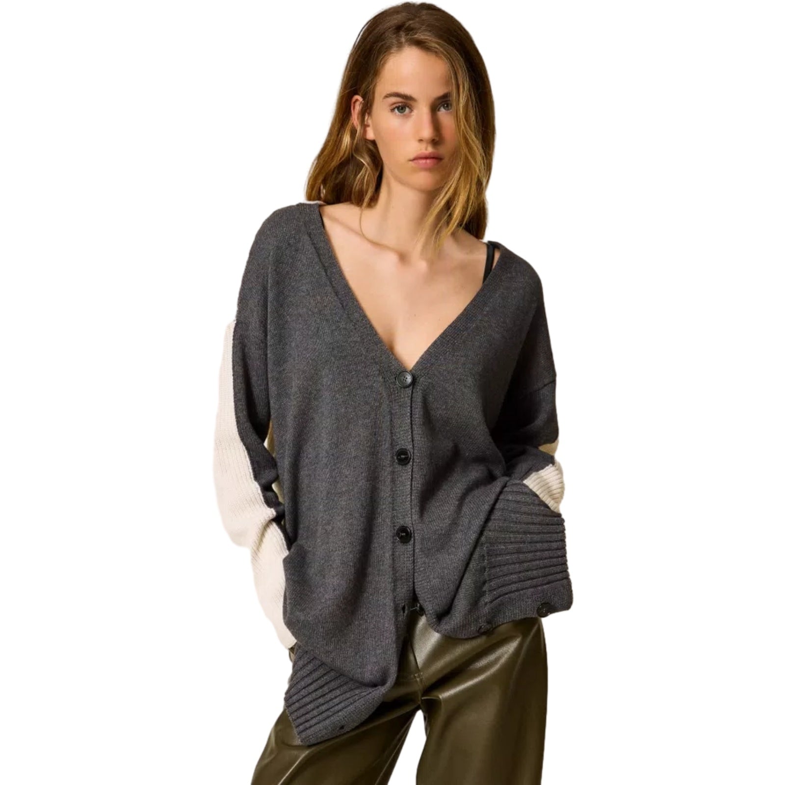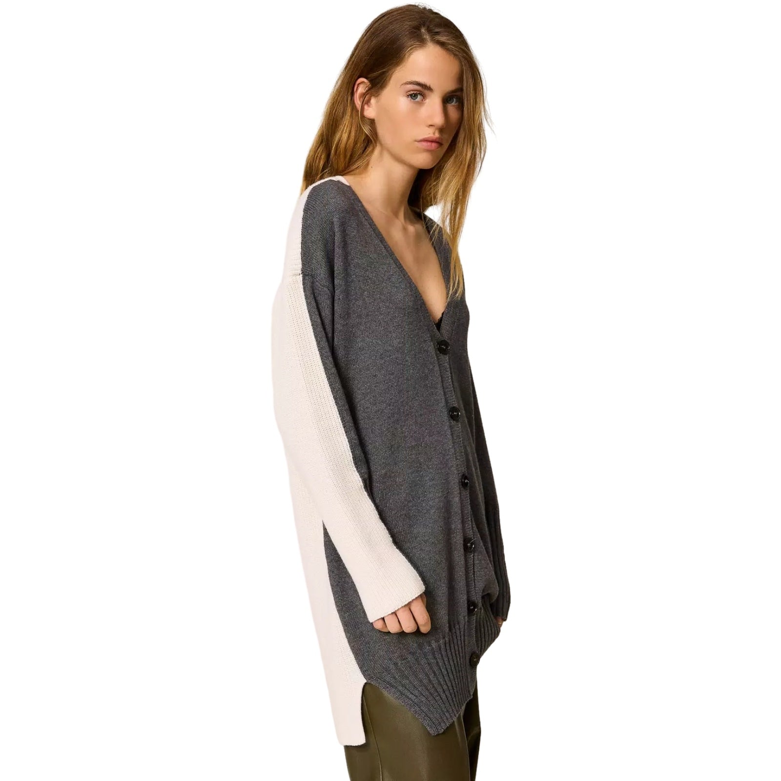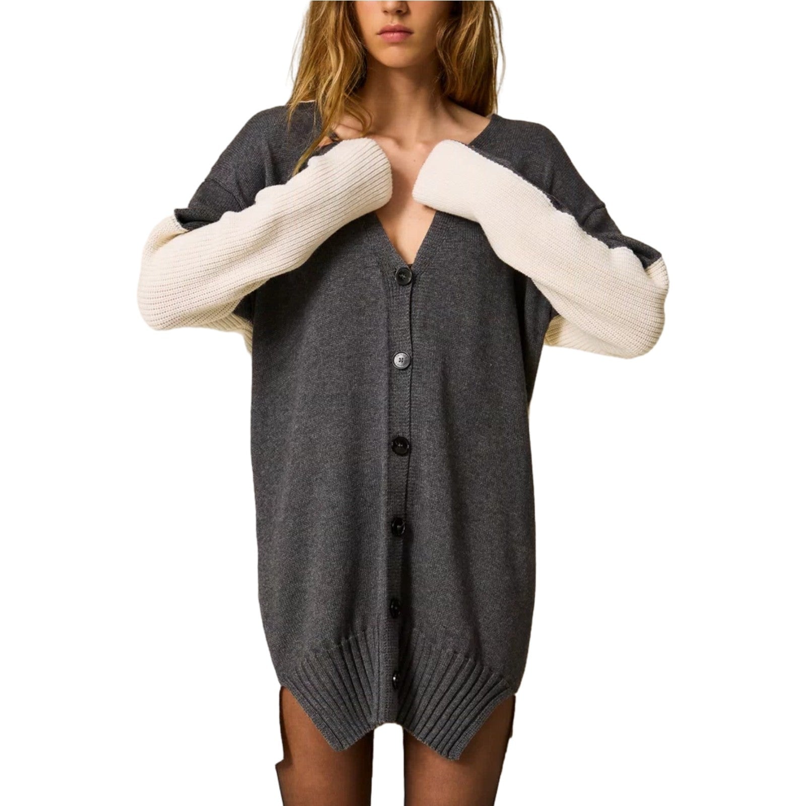 Cardigan Donna Twinset - Maxi Cardigan/Mini Abito Bi-Colore - Grigio