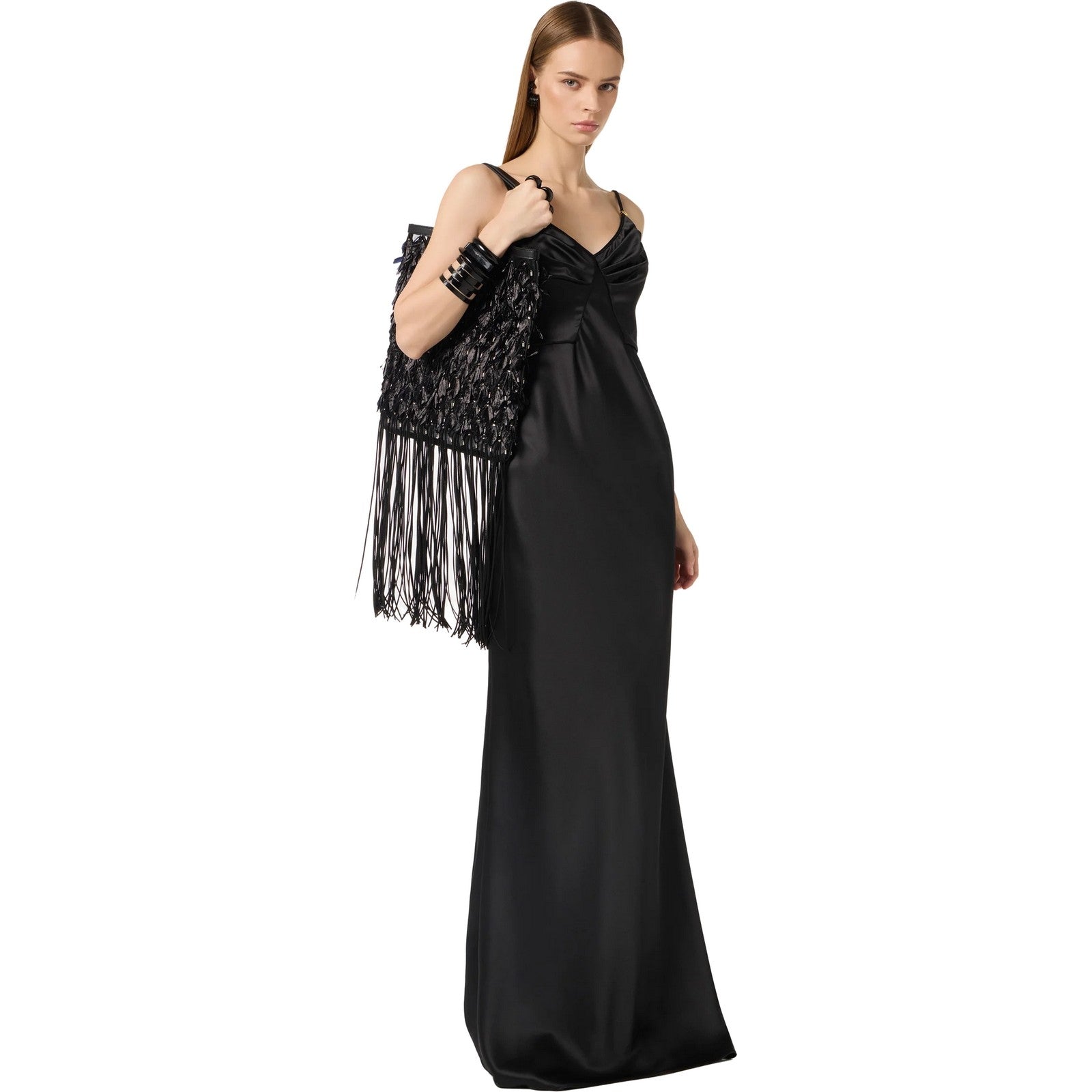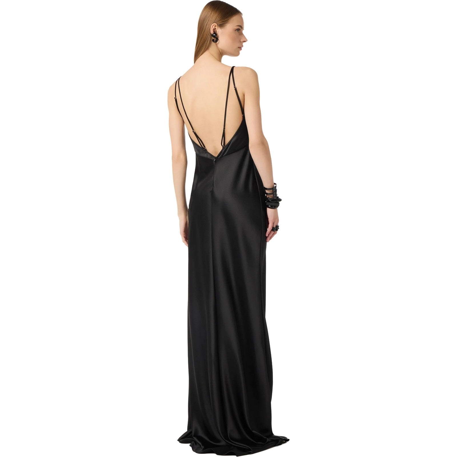 Con il suo design sofisticato e dettagli curati, l'abito è perfetto per una cerimonia, un matrimonio o un evento di gala. Il colore nero, simbolo di classico e versatile, permette di abbinare l'abito con accessori e calzature di ogni tipo, rendendo ogni outfit unico e personalizzato.